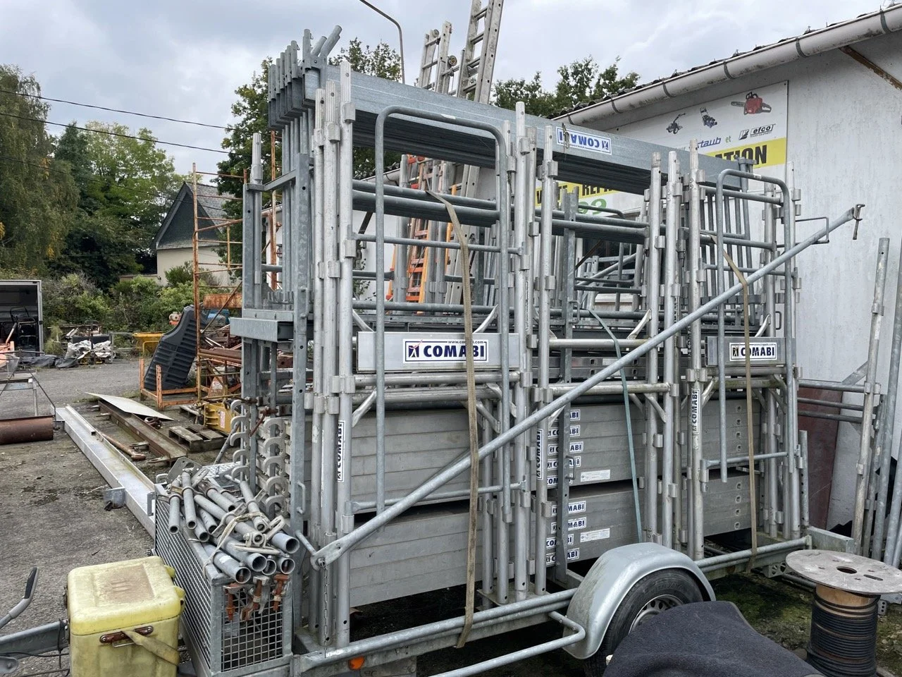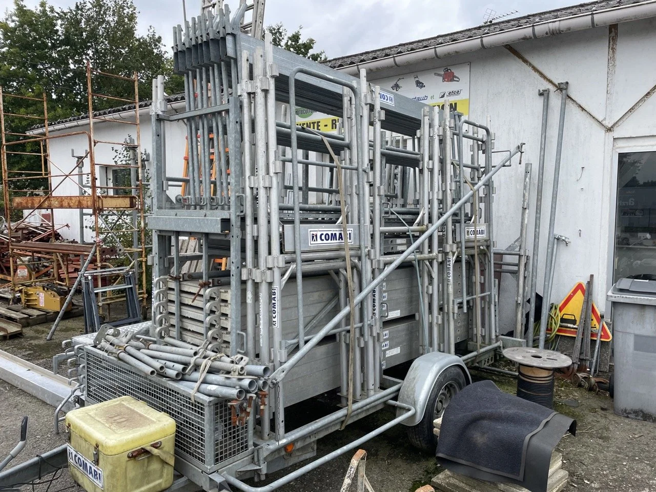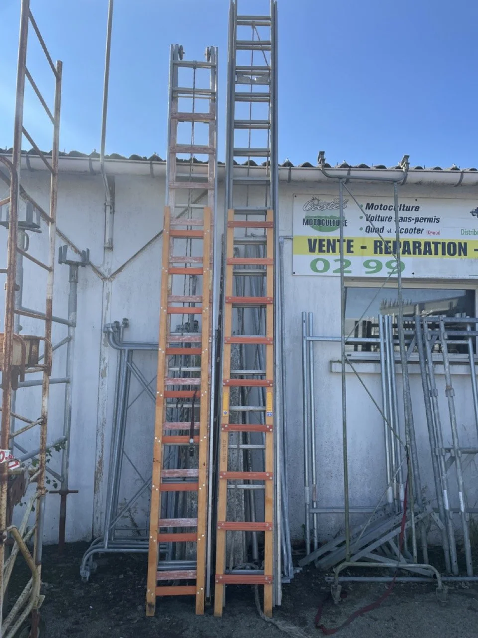 MATÉRIELS BATIMENT ET TRAVAUX PUBLICS ECHELLE ALU À COULISSE 10m + ECHELLE DE TOIT BOIS 4m 280,00 € ECHAFAUDAGE 88m2 COMABI TUBESCA R200 + REMORQUE 9 990,00 € POMPE A EAU PRAMAC MP 36-2 350,00 € TRONCONNEUSE A BETON THERMIQUE STIHL TS420 800,00 € PONCEUSE DE SOL GOLZ SM250 1 000,00 € GROUPE ELECTROGENE SDMO CX2500 150,00 € GROUPE ELECTROGENE FRANCE POWER FP 3000 350,00 € GROUPE ELECTROGENE THUNDER 200,00 € MINI PELLE SUNWARD SWE25UF NEUVE + Remorque 45 600,00 € GRUE À MONTAGE RAPIDE // POTAIN IGO 21 24 000,00 € Cylindre 2 billes 3 500,00 € GROUPE ELECTROGENE PRAMAC E4000 400,00 €